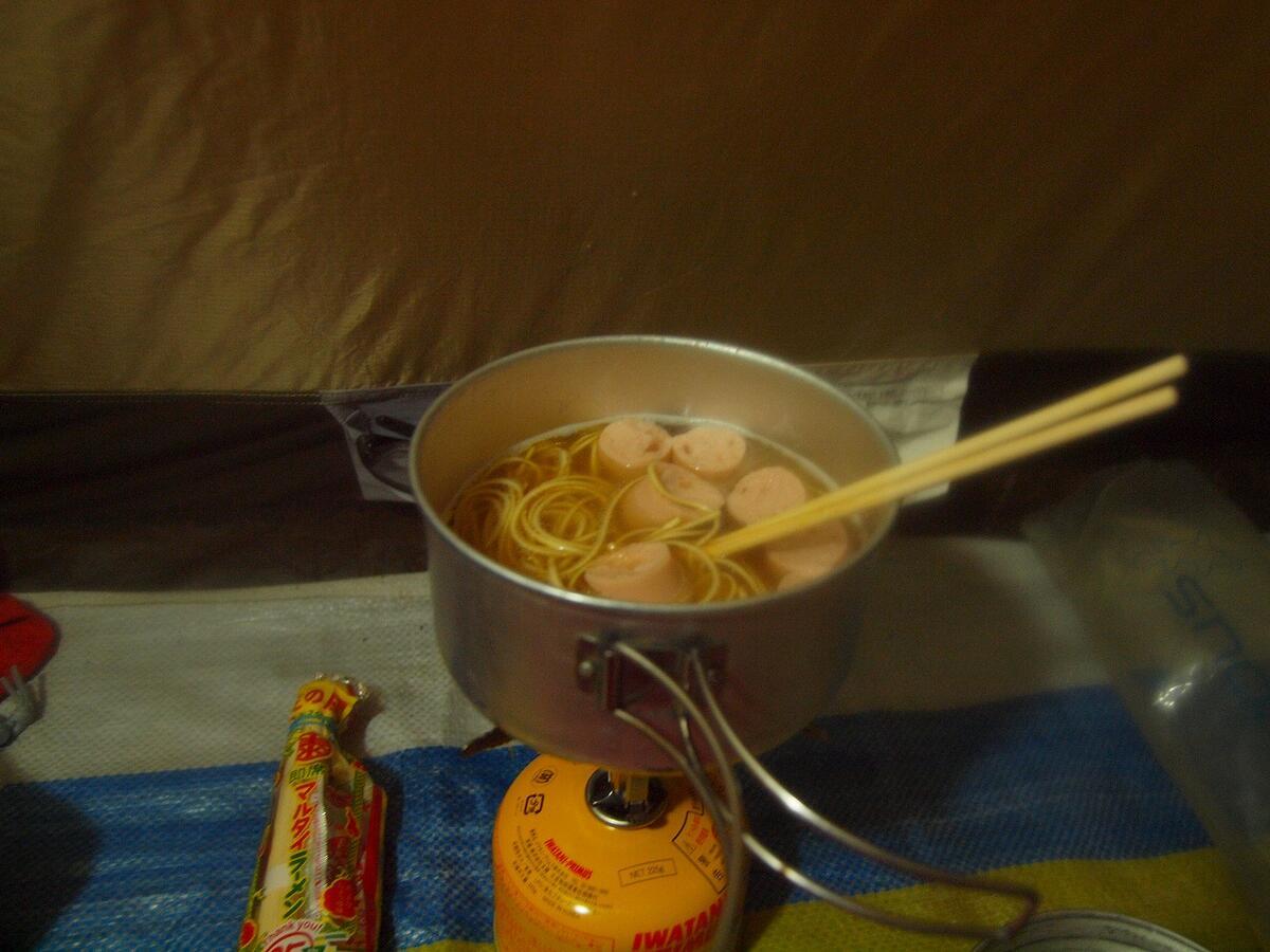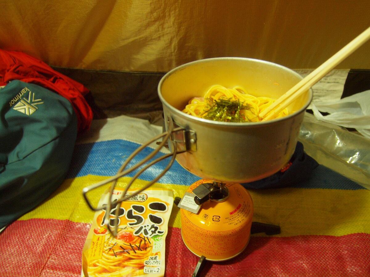 そのあとテント場に戻って一休みして夕飯を食べていると、体が冷えてきました。