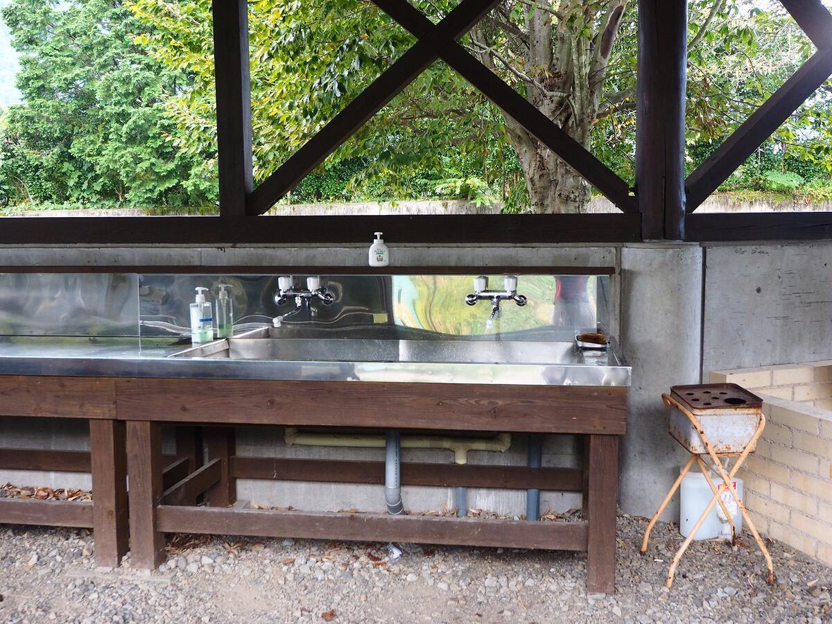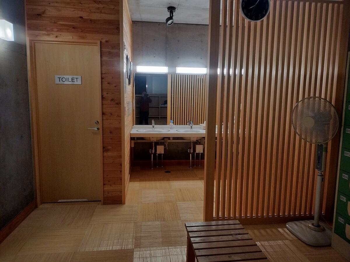 テント泊利用者用のトイレと水場は旅館内の設備を利用します。一旦建物の中に入って靴を脱ぐ必要あるのは面倒でしたが、綺麗なトイレと水道を使えるという意味では良いと思います。