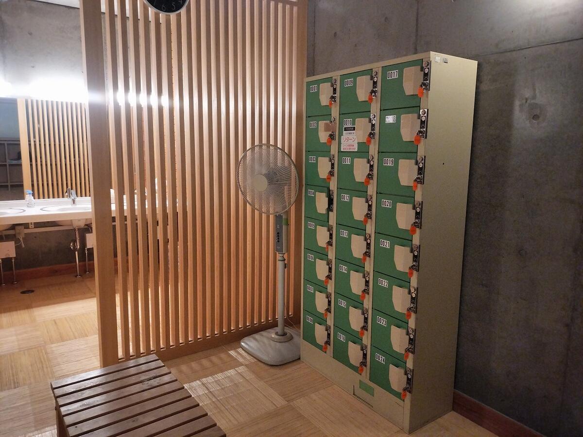 簡素な脱衣場はありますが、男女は別になっていません。