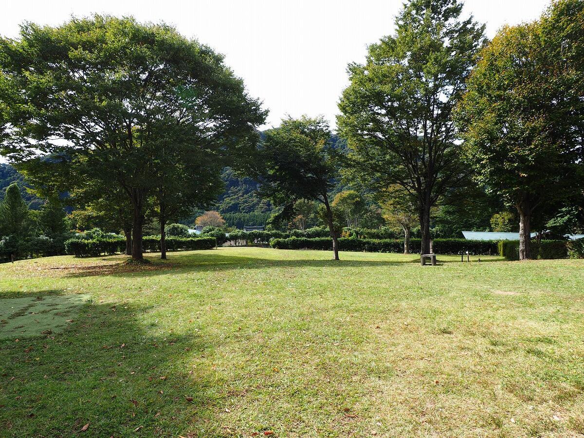 私はプライベート感を重視するので、周囲と距離感が保てそうな、上で示したテントサイト写真で、右側赤丸のスペースの端っこへテントを張りました。