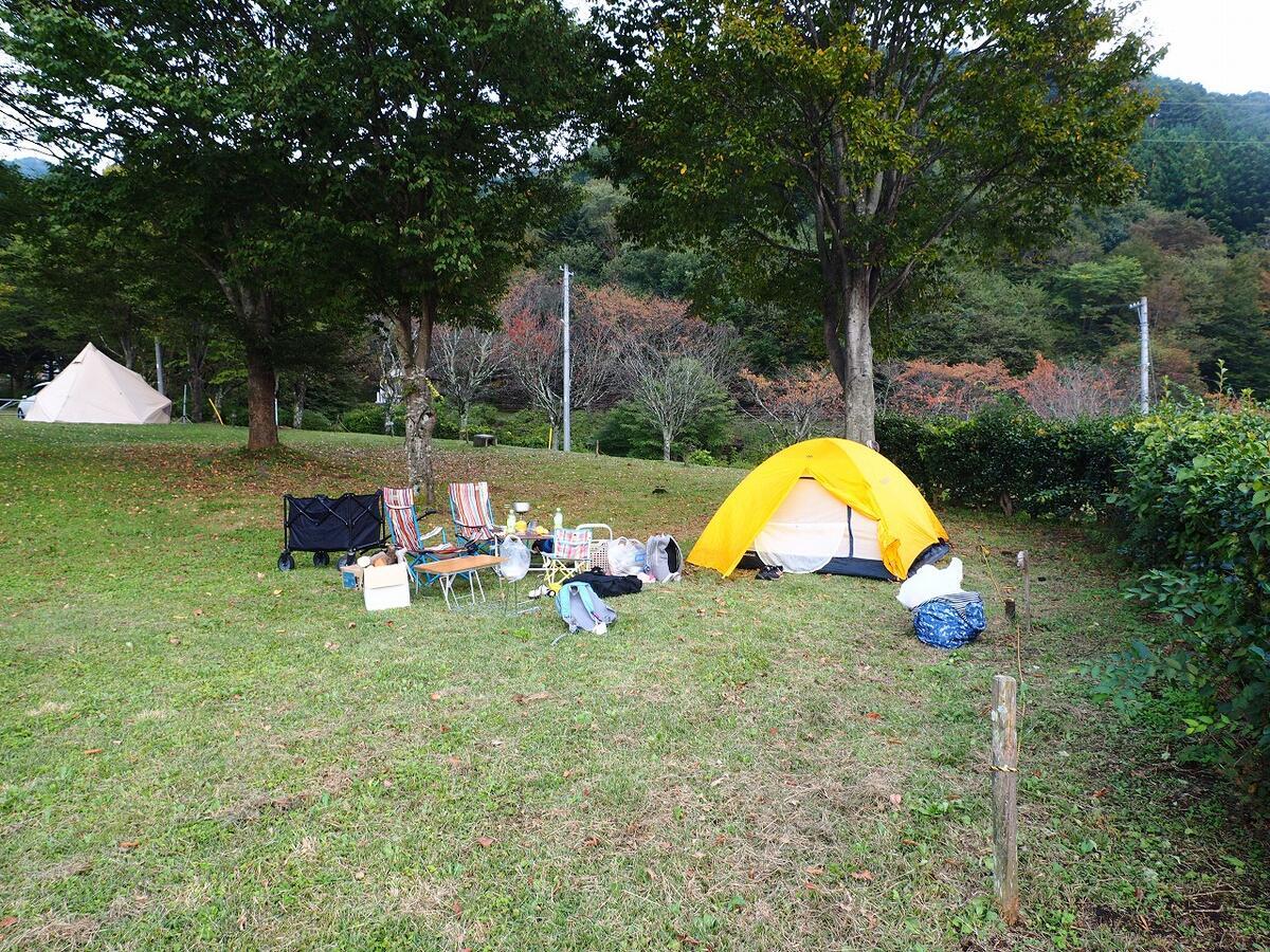 同じ空間にもう1人テント泊の方がいましたが、下の写真のようにちょうど良い距離感を保っていました。