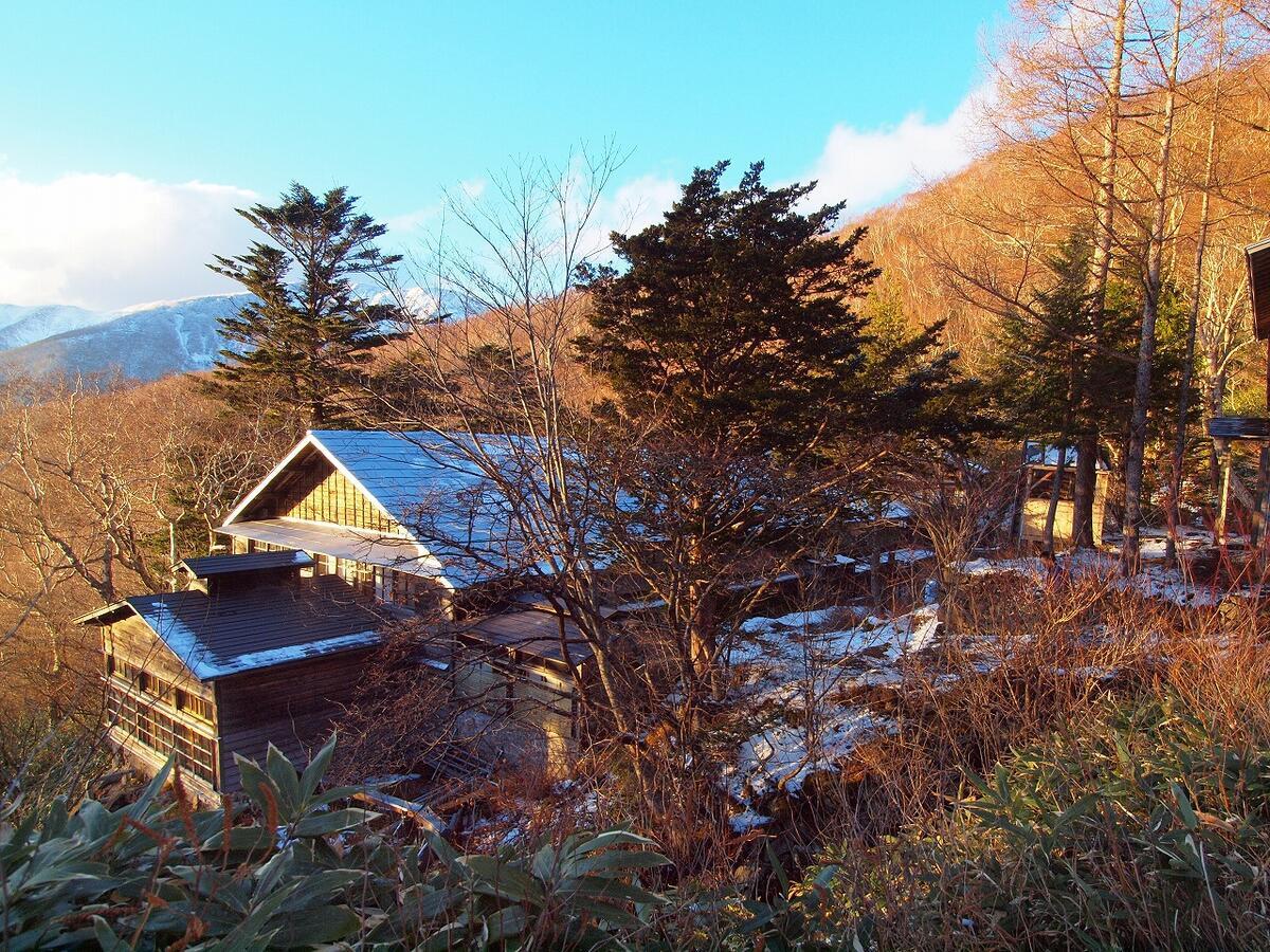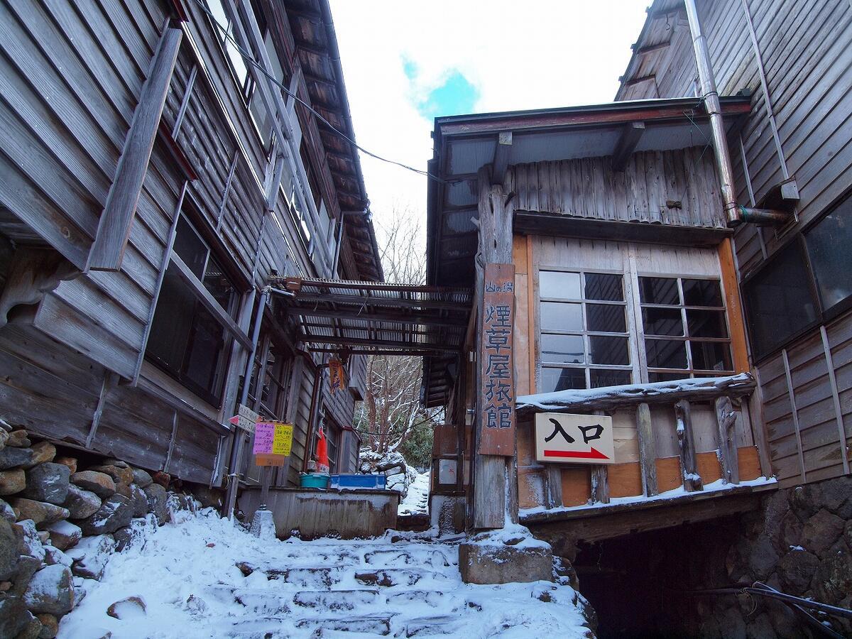 下の写真が三斗小屋温泉の煙草屋旅館です。私が行った時は11月末の初冬なので雪がありましたが、ベストシーズンの5月下旬から10月いっぱいであれば雪はないでしょう。