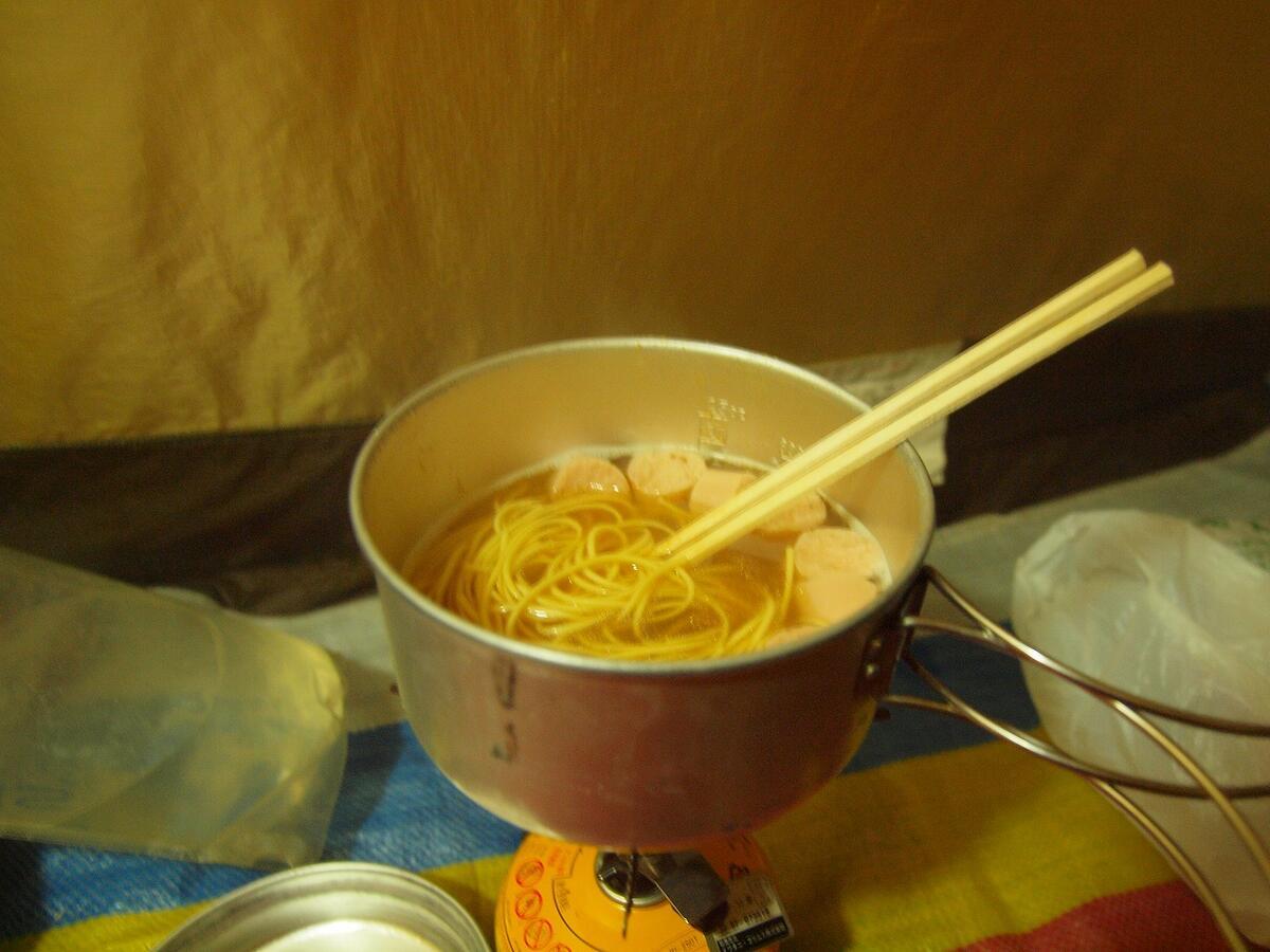 夕飯はレトルトパスタ、朝食は棒ラーメンを食べました。