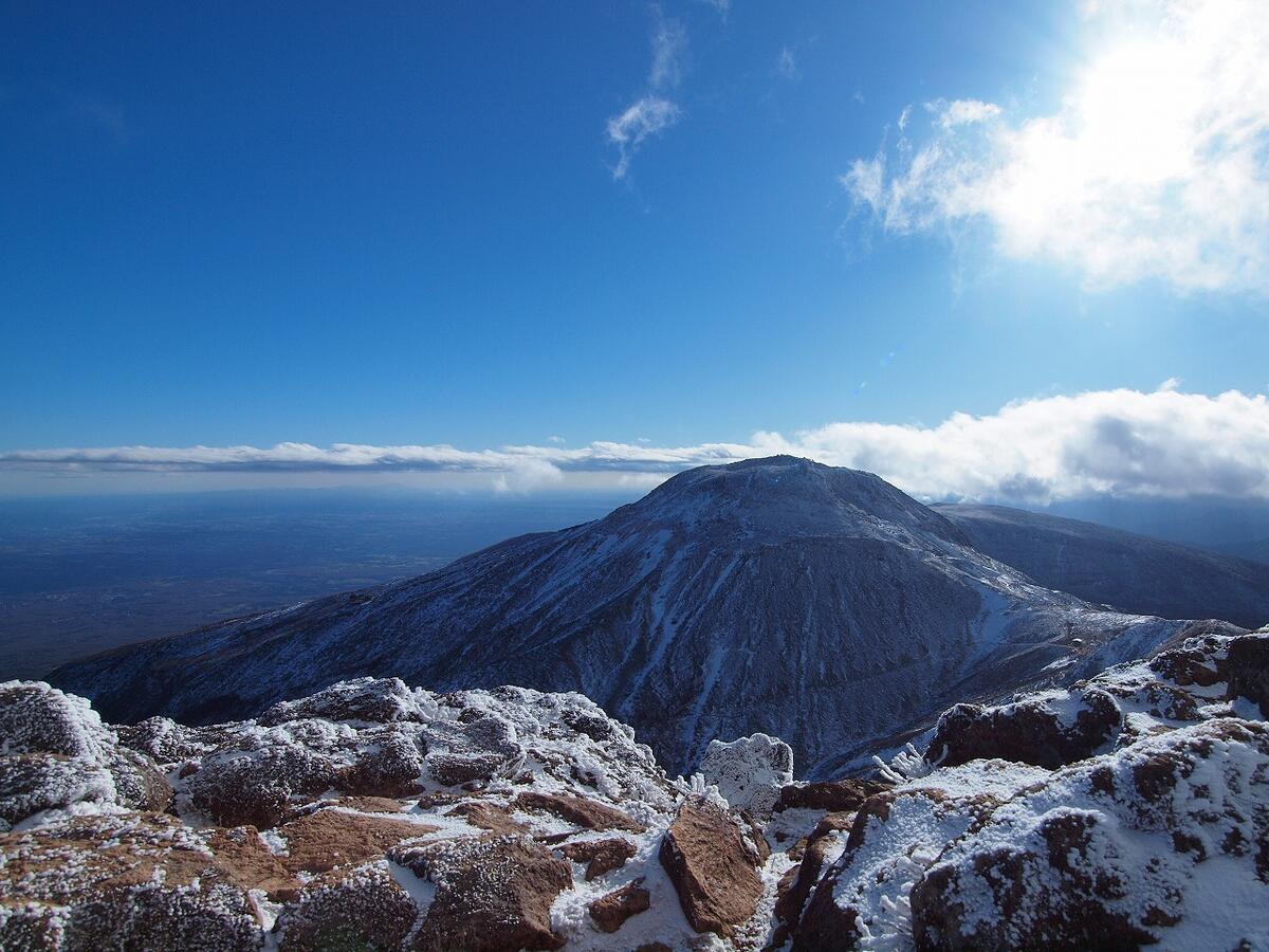 雪が積もった茶臼岳は本当に綺麗でした。