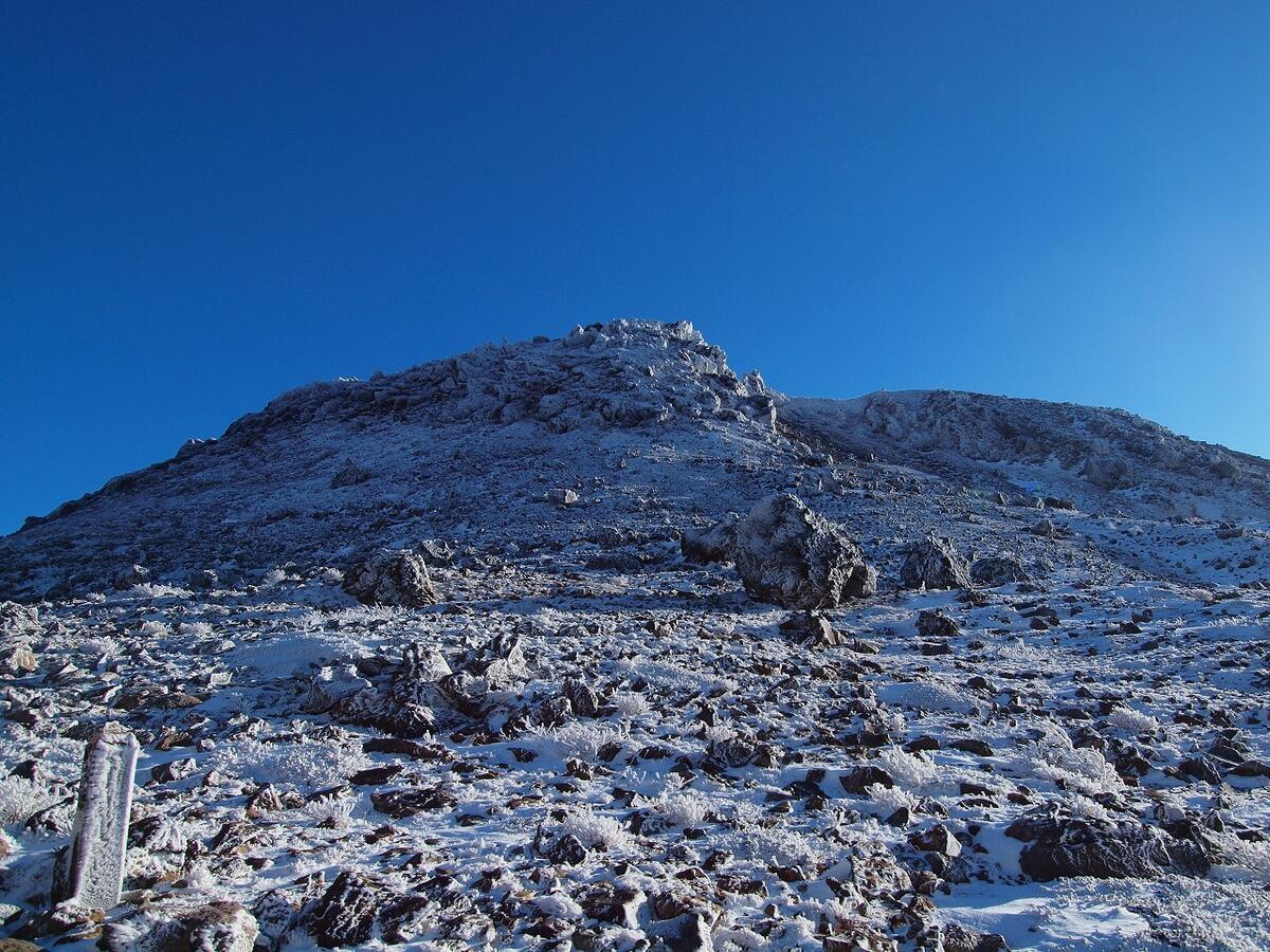11月末の那須岳は、場所によっては積雪が30cmくらいあって、足がズボズボ埋まる箇所もあるくらいでした。しかし青空を背景にした、積雪のある那須岳の景観は非常に綺麗だったのでその様子を紹介しておこうと思います。