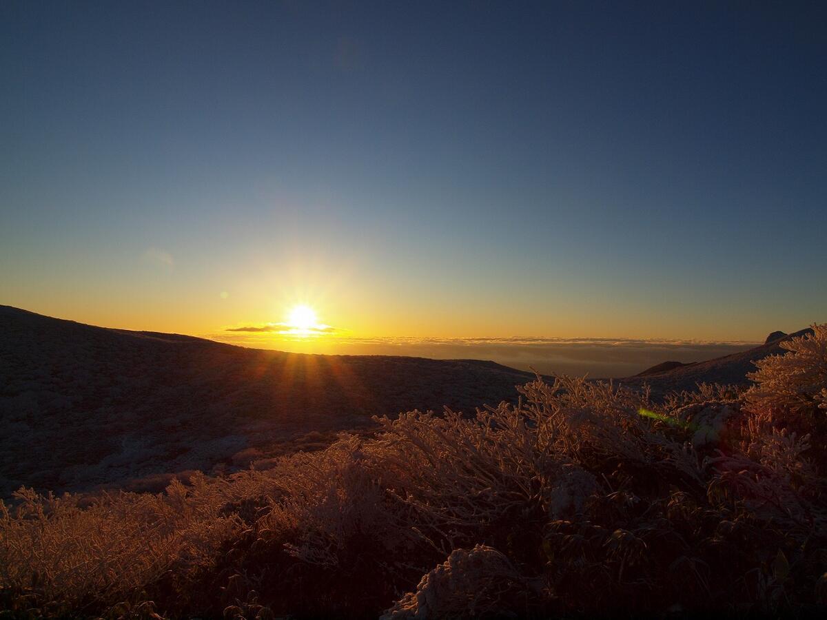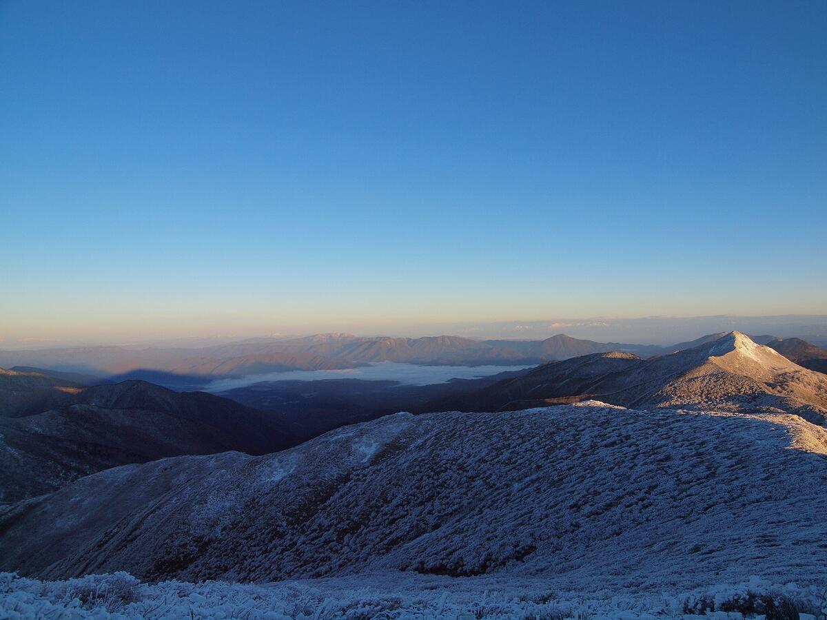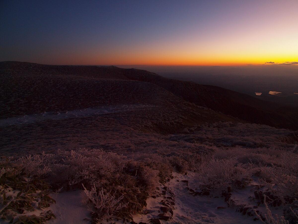 那須岳の稜線へ出たあたりで、空が明るくなってきました。
