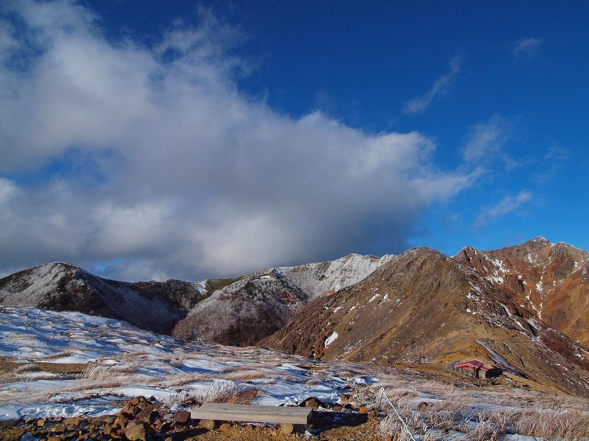 初日に初冬の朝日岳と茶臼岳に登った様子