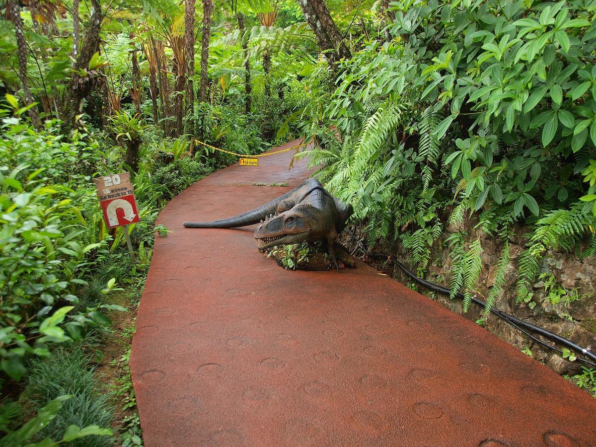 下の写真のような小道を歩いて行きます。私が行ったときは、雨上がりだったので、木々が濡れており、余計恐竜が出そうな雰囲気を盛り立てていました。いつ恐竜が出てくるのか、ドキドキさせられました。