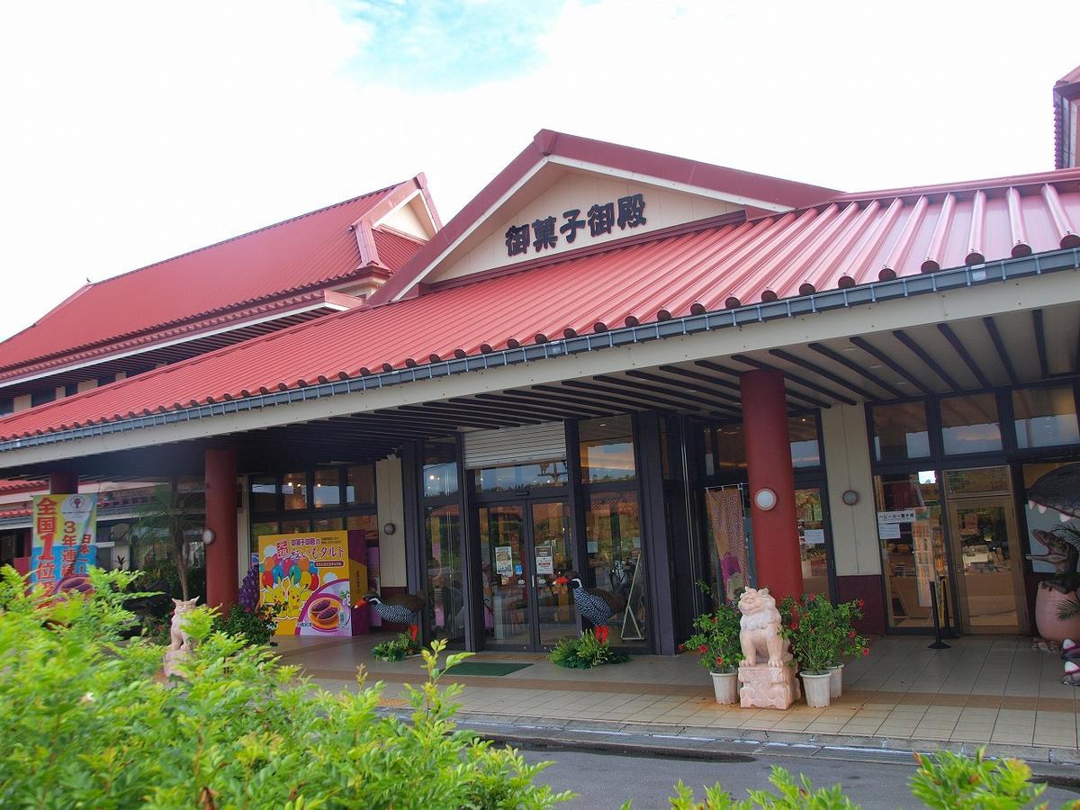 御菓子御殿は、沖縄土産で人気お菓子の紅芋タルトをメインに販売する土産物屋で、現在沖縄に8店舗あります。名護店以外の店舗では、紅芋タルトの工場見学、紅芋タルト作り体験ができたり、沖縄料理のレストランを併設するなど、お菓子販売以外にプラスして観光も楽しめるような施設作りをしているようです。