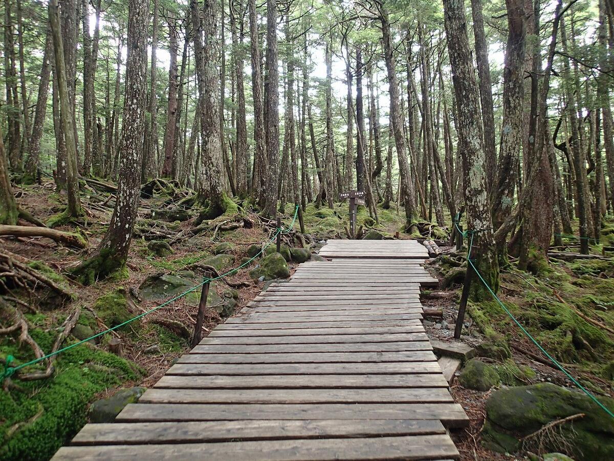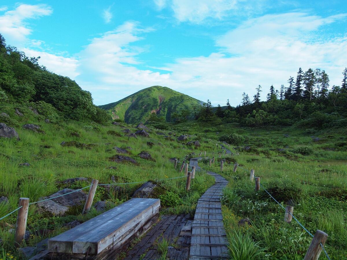 沼原池駐車場からの登山道は、鬱蒼とした森の小道や廃村した三斗小屋宿跡、橋を渡ったりと、変化に富んでいますが、割と地味な印象でした。私が行ったときは三斗小屋温泉から沼原池駐車場へ歩いたのですが、平日だったせいか、他の登山客と2~3人しか会いませんでした。