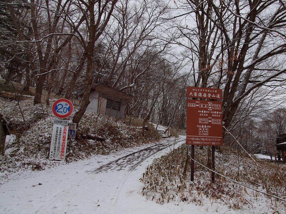 登山はロッヂ長兵衛がある上日川峠からスタートします(冬はもって手前のゲートから)。福ちゃん荘までは車も通れる細い林道を歩きます。