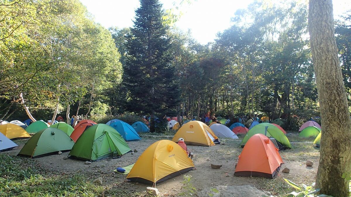 見晴キャンプ場はシーズン中非常に人気で、天気の良い日は以下のように多くのテント泊登山者で賑わっています。私が行ったとき12時くらいに到着して7割くらい埋まっており、15時くらいには張る場所がほぼなくなっていました。。