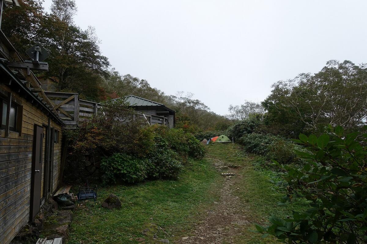 下の写真は煙草屋旅館で、その下にテント場の写真を載せます。テント場の広さは8張分で、あまり広くないです。平日でも満員で人気があるようです。