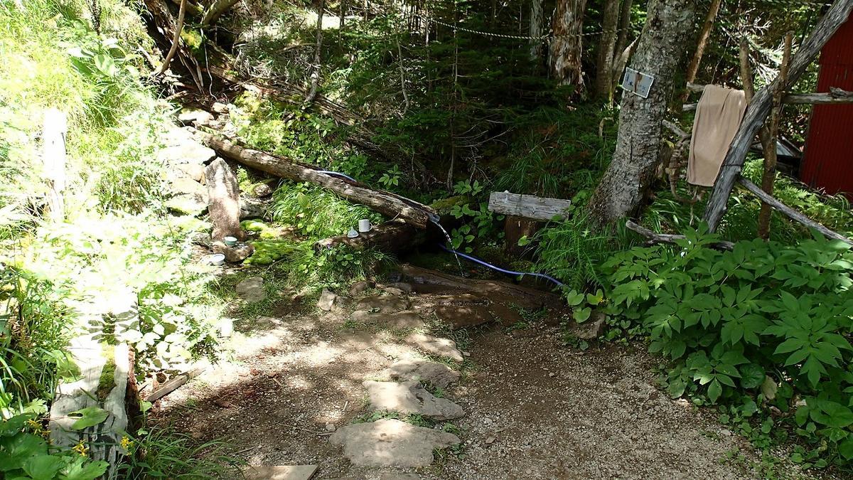 このテント場の最大の魅力は、下の写真の、こんこんと湧き出る、南アルプスの天然水でしょう。