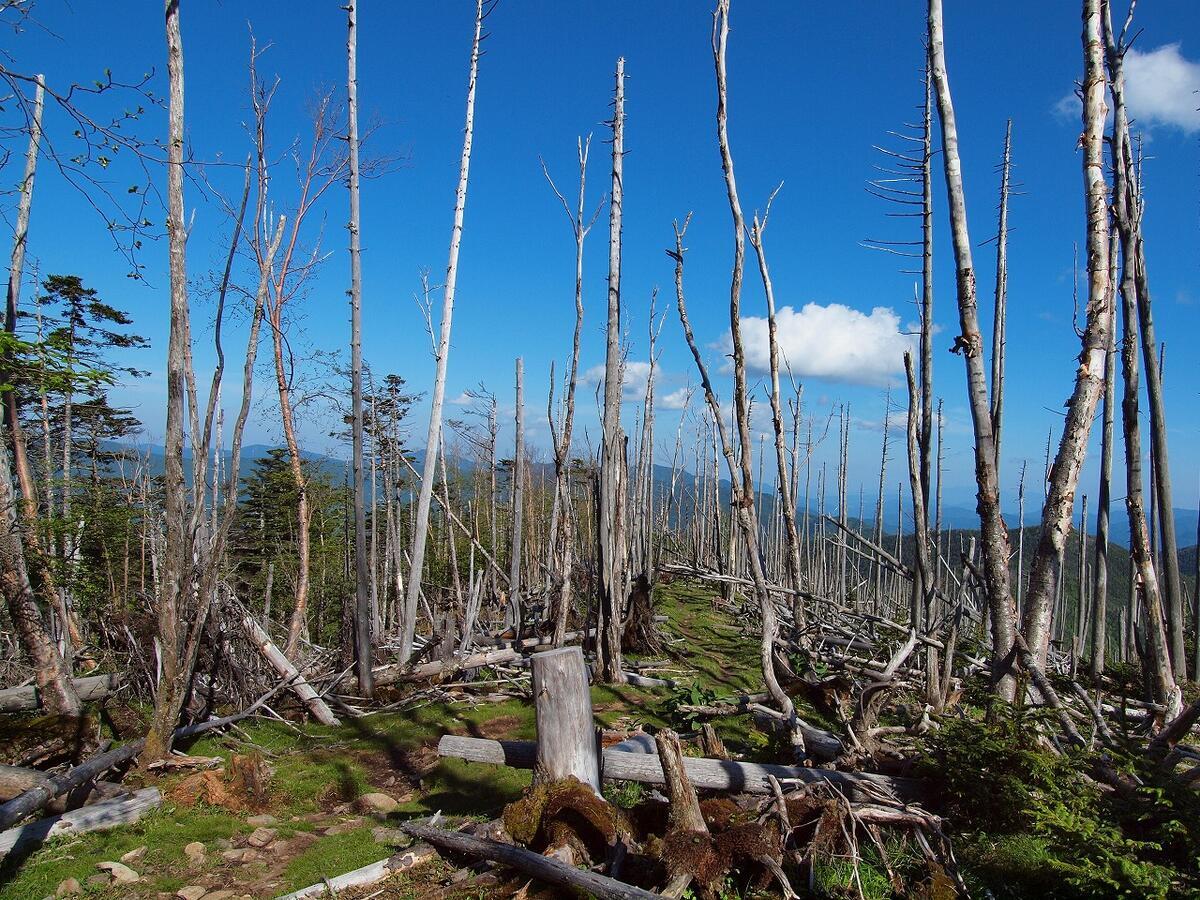 例えば、下の写真は雁坂嶺あたりの枯れ木群ですが、非常に独特な雰囲気を醸し出しているのが分かると思います。