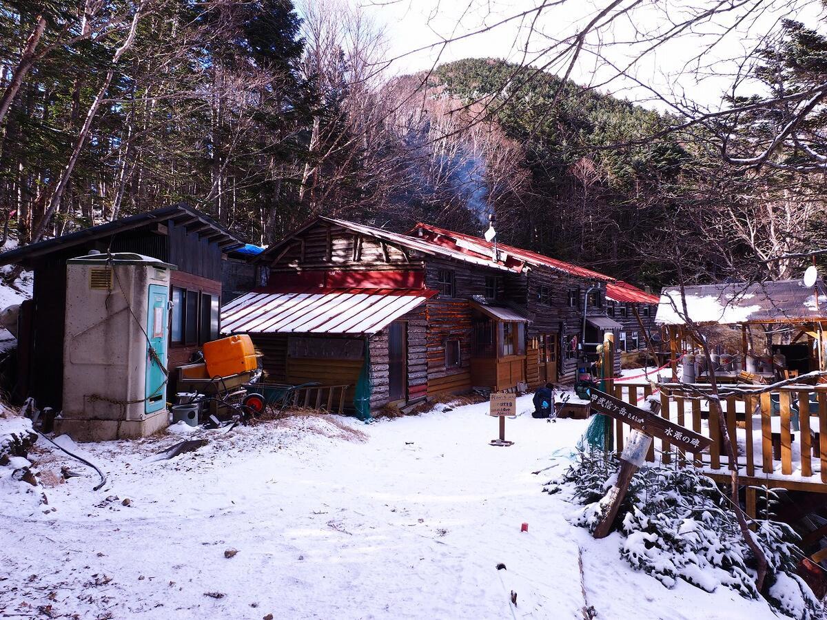 私が行った時は冬なので水道は凍結しており、水場はありませんでしたが、山荘で受付時に水を2Lもらいました。これ以上必要な場合も、言えばくれそうな雰囲気でしたが、受付へ行くのが面倒だったので、足りない分は雪を融かして水を作りました。