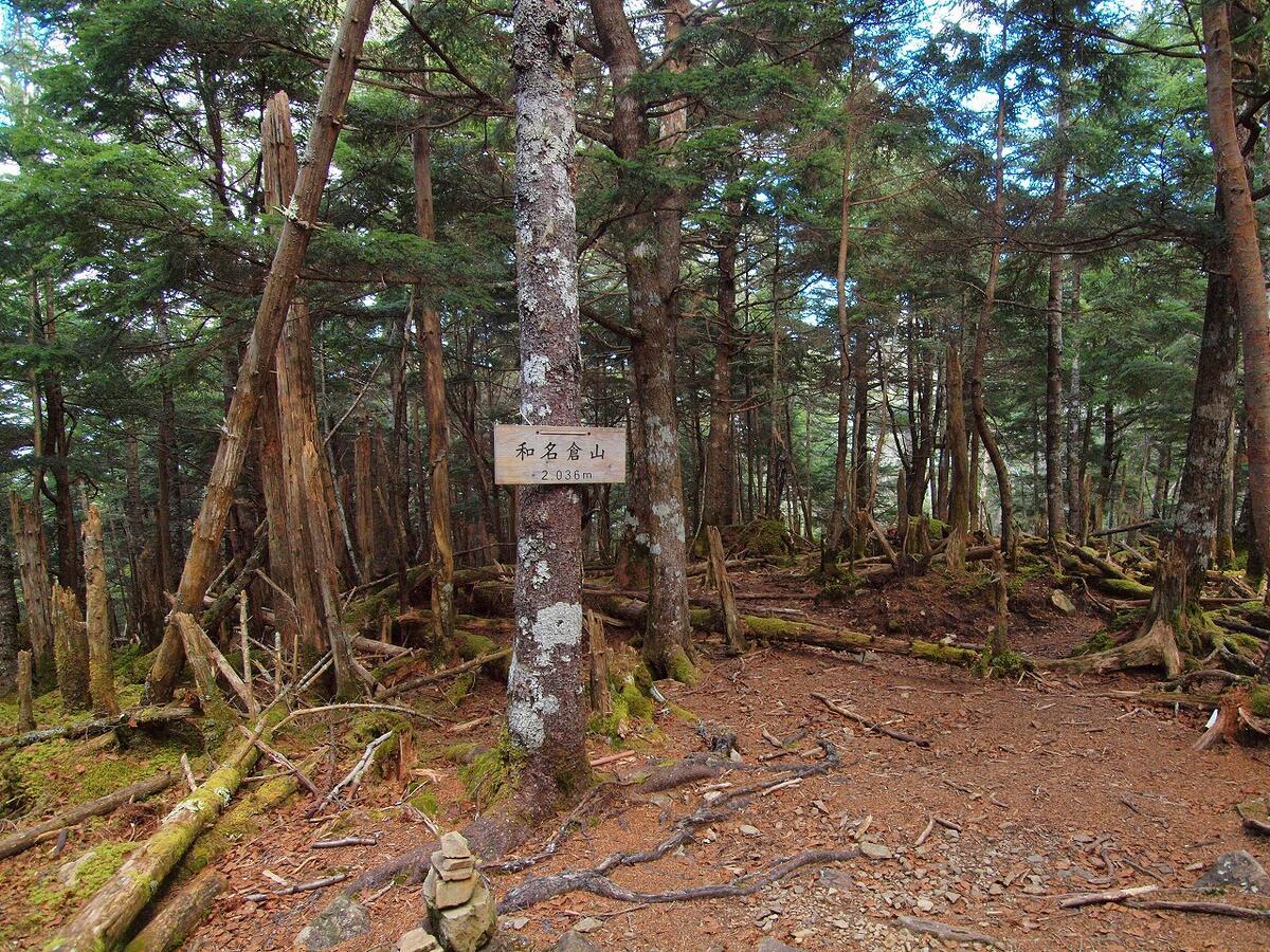 標高2,000m程度だと森林限界に達しないので、登山道は主に鬱蒼とした樹林帯の中となり、北アルプスなどと比較して、どうしても地味なイメージとなりやすいです。しかし、日陰で育った木々や植物の雰囲気が独特で絵になり、神秘的な印象さえあります。なんというか、昔からそこにある太古の山という感じがして、苔がよく似合います。