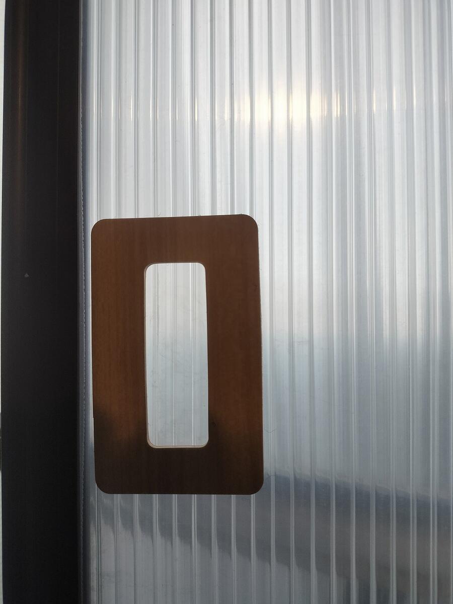 窓枠へポリカ中空をはめ込み、横方向へスムーズに動くか確認します。