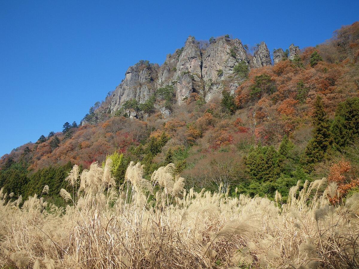 4つ目に紹介するのは、群馬県東吾妻町にある岩櫃山(標高802m)です。迫力あるごつごつした岩の山容が特徴の山で、眺めても楽しめるし、登っても山頂からの高度感抜群の眺めを楽しめます。