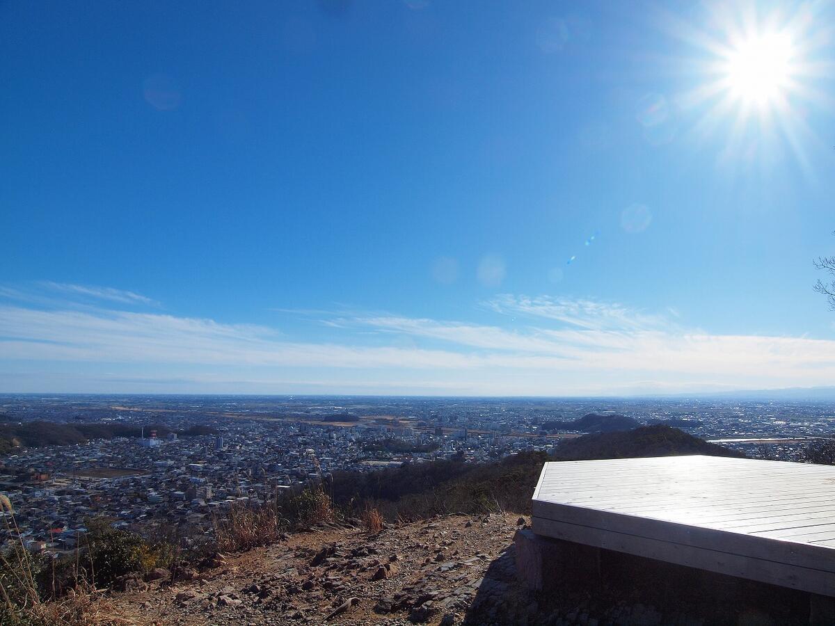 眺めは360°の大展望というわけではないですが、桐生市街を一望できます。やはり綺麗な景色を見るためには、空気が澄んだ冬の晴れた日に訪れたい場所です。